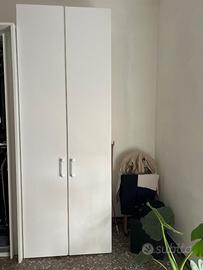 cameretta bambini bianca moderna completa con due strutture per letti e un comodino