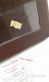 MICHELE CASCELLA (1892-1989) quadro con serigrafia su lastra d'argento 800 di cm. 15x20 "La meridiana" dimensioni con cornice 44 x 39 cm - Tiratura 999 la presente numerata 889 Firma incisa sul fronte . Retro quadro in pelle marrone con certificato di autenticità Manca targhetta con nome opera sul fondo al centro (vedi foto) Trasporto /spedizione a carico acquirente Disponibile per ulteriori foto e chiarimenti Solo contatto telefonico: chiamata /sms/whatsapp