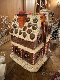 Deliziose case per villaggj di Natale decorate con biscotti e caramelle,una perfettamente funzionante con illuminazione ,le altre 2 non s’illuminano.