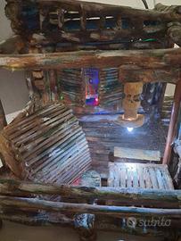 casetta di legno fatta a mano per presepi con punti illuminati