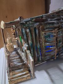 casetta artigianale per presepe con illuminazione