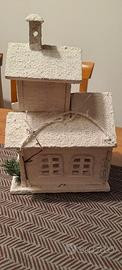 Casetta devorativa Natalizia, in legno con tetto innevato. Sportello posteriore per poter inserire un eventuale illuminazione interna.