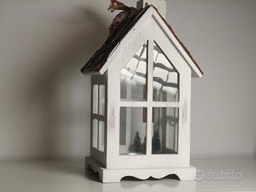 Bellissima lampada a forma di casetta in stile shabby/country, perfetta come decorazione natalizia o per creare un’atmosfera calda e accogliente in casa.