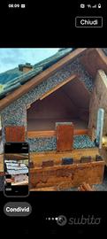 mini casetta in legno e pietra con Piccola cassaforte con chiavi