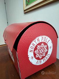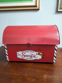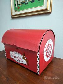 Cassetta porta doni natalizia misure 25 cm x 25 cm x 39 cm,colore rosso e bianco