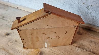 Vendo casetta per chiavi, da parete, artigianale. L'articolo è in legno e va leggermente restaurato ma è in ottime condizioni. Dimensioni: larghezza 30 cm, altezza 27 cm. Vendita visto e piaciuto. Non effettuo spedizioni, solo ritiro a mano