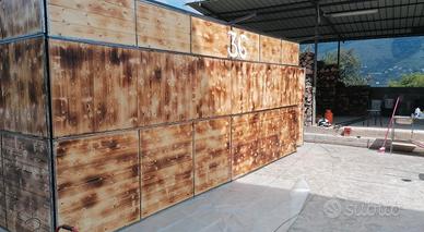 Vendo casetta legno e ferro ,modulare, 6X3 m, con finestre ad antiribalta sia laterali che frontali, la porta di accesso si trova dalla parte laterale destra guardandolo frontalmente. Le finestre hanno un altezza di 1,20m e sono apribili per tutta la larghezza!! L’altezza totale frontale è di 2,50m con una lieve pendenza verso il retro per consentire il defluidimento di acqua piovana! Manca il rivestimento del tetto! La casetta puó avere utilizzo commerciale o privato! Stata ideata per chiosco bar!!