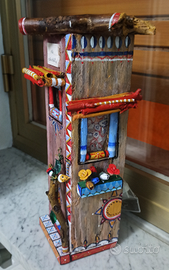 Casetta siciliana ,prodotto artigianale pezzo unico ,con luce si illumina a corrente ,provvista di filo e lampadina .