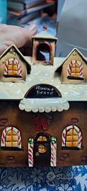2 Deliziose casette natalizia in metallo, perfette per decorare la tua casa durante le feste. Una è un portacandele , altra una scatolina