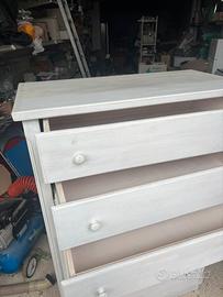Vendo per inutilizzo cassettiera settimino in legno massello di colore bianco vintage verniciato con vernice ad acqua molto bello ed abbinabile con arredamenti sia moderni che vintage dotata di 3 cassetti piccoli piu 2 cassetti grandi..molto spaziosa