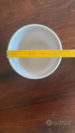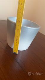 Piccolo cashpot sottovaso per piantine di piccole dimensioni in ceramica. Colore con sfumatura dal bianco al grigio argento chiaro. Misure in foto