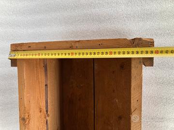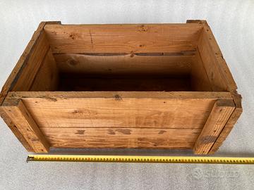 Cassa legno molto robusta e pesante, misure esterne 60x40 h 28…nella prima foto un idea di utilizzo come contenitore di cose vintage e con un vetro come coperchio diventa un tavolino.