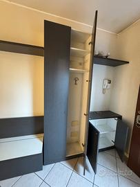 Armadio Alto: larghezza 80 cm Profondità 35cm Altezza 232cm Cassapanca Larga 45 cm Lunga 130 cm Alta 44 cm Pannello dietro integrato Lungo: 204 cm Alto 80 cm Spesso 3 cm Mensola Lunga 240 cm Larga 35 cm Spessa 3 cm Mensolina Lunghezza 88 cm Larga 35 cm Smontaggio e trasporto a carico dell’acquirente PREZZO TRATTABILE