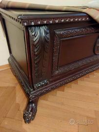 Cassa panca in noce intarsiata con contenitore tenuta benissimo misure 50 x 140