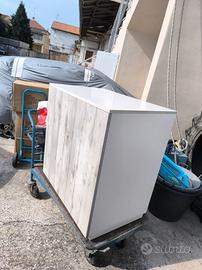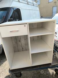 vendo bellissima cassa per negozio in legno, colore grigio, cassetto con serratura, 5 scomparti, foro a scomparsa per l'eventuale passaggio dei cavi per cassa e apparecchiature elettriche, misure circa 130 X 60, H 120, tenuta perfettamente, ha solo 4 anni di vita