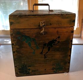 Vecchia cassa decorata con decoupage restaurata e rifinita con prodotti atossici.
