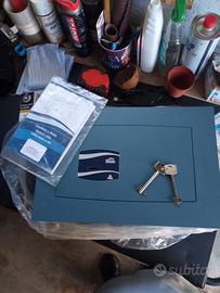 Cassaforte a muro nuova mai installata o usata con scatola originale. Marca Stark con chiusura a chiave a 4 catenacci e mensola interna. Misure: B 42 x H 28 x P 19,5.