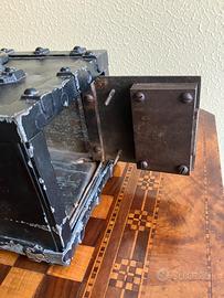Cassaforte da viaggio della fine del 1800 in metallo e con serratura funzionante. Misure: larghezza 29,altezza17,profondita 19, peso 10kg