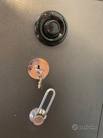 MODELLO CASSAFORTE CASSAFORTE CONFORTI C4 COLORE RAL INTERNO/ESTERNO 7031 – RIPIANI 7047 MISURE ESTERNE: H. 900 L. 500 P. 360 + 40 MM MISURE INTERNE H. 795 L. 390 P. 210 MM PESO CIRCA KG. 240 kg RIPIANI N. 3 SERRATURA A CHIAVE SERRATURA A CHIAVE FORNITA IN DUPLICE ESEMPLARE COMBINAZIONE COMBINAZIONE MECCANICA 3 DISCHI Caratteristiche: Ripiani spostabili su cremagliera; Serratura: a chiave doppia mappa fornita in duplice esemplare, combinazione meccanica; Predisposta per ancoraggio a solaio e a muro