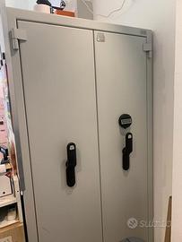 Dimensioni esterne (cm HxLxP) 195 x 100 x 50 (+cm 6,5 di sporgenza maniglia) Dimensioni Interne (cm HxLxP) 185 x 99 x 42 Peso kg 220 ; Capacità (dmc) 760 Serratura digitale con tastiera per digitazione codice personale, alimentata batterie, molto pratica ed intuitiva Battenti 2 ; Piani 4 Colore Grigio RAL 7035 L'armadio è in ottime condizioni, come nuovo Trasporto a cura dell'acquirente