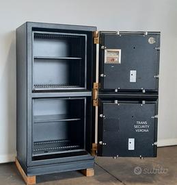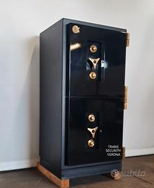 INSERZIONE N°: S.82 Contattateci direttamente con un semplice messaggio whatsapp al daremo risposta a tutte le vostre richieste. Trans Security Service S.N.C. è un'azienda che dal 1988 si occupa di vendita e noleggio casseforti.  Cercate nel web "Trans Security Service S.N.C." troverete molti altri modelli di casseforti e armadi.  I nostri prodotti sono prodotti usati e noi li ripristiniamo direttamente mantenendo intatte le caratteristiche di sicurezza,di funzionamento e relative certificazioni, consentendo così al cliente la libertà di personalizzare il prodotto(colore e allestimento). Marca: Lips Vago Modello Cassaforte: Aurea (Verticale) Colore RAL: Nero (RAL 9005) Pronta consegna. Dimensioni esterne: H. 1540 L. 800  P. 700  mm Dimensioni interne (Vano Superiore): H. 580 L. 575  P.  390 mm Dimensioni interne (Vano Inferiore): H. 580 L. 575  P.  390 mm Peso: 1.500 Kg  N° Ripiani: 1 ripiano x vano Vano Superiore: Serratura a chiave: Duplice esemplare  Combinazione: Combinazione meccanica a 4 dischi Vano Inferiore: Serratura a chiave: Duplice esemplare  Combinazione: Combinazione meccanica a 4 dischi *È possibile montare una combinanzione elettronica. *È possibile richiedere una lampada a led ricaricabile con sensore movimento per illuminare l'interno (aggancio tramite calamita) E' possibile ritirare direttamente la cassaforte in azienda o richiedere preventivo per trasporto e istallazione.  Non è garantita la disponibilità immediata, ma potrebbero essere richiesti 4/5 gg lavorativi.  Per Info:  mail o telefono (sms\WhatsApp)  Facendo riferimento al numero dell'inserzione,in questo caso "INSERZIONE N°: S.82".