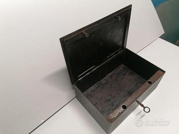 Vendo cassaforte portatile vintage con maniglia e serratura funzionante con una chiave. Misure 10x18,5x27cm