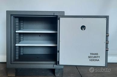 INSERZIONE N°: S.86 Contattateci direttamente con un semplice messaggio whatsapp al daremo risposta a tutte le vostre richieste. Noi di Trans Security Service S.N.C. siamo un'azienda di Verona che dal 1988 si occupa di vendita e noleggio casseforti.  Cercate nel web "Trans Security Service S.N.C." troverete molti altri modelli di casseforti e armadi.  I nostri prodotti sono prodotti usati e noi li ripristiniamo direttamente mantenendo intatte le caratteristiche di sicurezza,di funzionamento e relative certificazioni, consentendo così al cliente la libertà di personalizzare il prodotto(colore e allestimento). Modello cassaforte: Cassaforte ad 1 battente Marca: TS - TRANS SECURITY Colore RAL: RAL 7022               *Colore a scelta tra i colori Ral inseriti nell'offerta (1013, 1015, 5014, 6020, 6021, 7001, 7015, 7016, 7022, 7030, 7035, 7038,  7040, 7047, 9010, 9005, 9006 senza variazione di prezzo)  Dimensioni esterne: H. 690 L. 600 P. 690 + 40 mm Dimensioni interne: H. 550 L. 550 P. 440 mm   Peso: 440 Kg  N° ripiani: 2 2 fori per ancoraggio: sulla schiena e sulla base della cassaforte .  Serratura a chiave: Duplice esemplare  Combinazione: Meccanica 3 dischi *Combinazione Elettronica su richiesta, comporta variazione di prezzo. E' possibile ritirare direttamente la cassaforte in azienda o richiedere preventivo per trasporto e istallazione..  Non è garantita la disponibilità immediata, ma potrebbero essere richiesti 4/5 gg lavorativi.  Per Info:  mail o telefono (sms\WhatsApp)  Facendo riferimento al numero dell'inserzione , in questo caso "INSERZIONE N°: S.86".