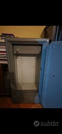 REGALO Splendida Cassaforte Vintage JUWEL – Design Modernariato Vendesi imponente cassaforte professionale a marchio Juwel, leader storico nel settore della sicurezza. Un pezzo che coniuga la massima robustezza alla pulizia estetica del design industriale del secolo scorso. Caratteristiche Principali: Marca: Juwel (logo originale cromato in rilievo). Dimensioni: Altezza 150 cm | Larghezza 74 cm | Profondità 70 cm. Note sulla consegna: L'oggetto è molto pesante. Il ritiro e il trasporto sono a carico dell'acquirente