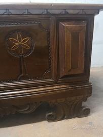 bellissima cassapanca in noce del 600 con cerniere originali ad anello, già restaurata.