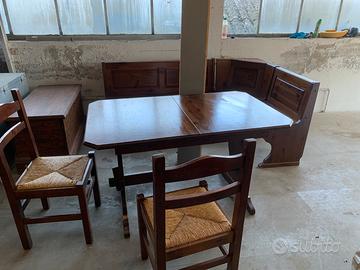 Cassapanca ad angolo l193x130 tavolo allungabile 130 /170x80 piu due sedie in legno tutto in ottimo stato