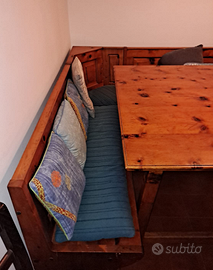 Cassapanca ad angolo con stivaggio sotto, e tavolo, tutto in legno. Ottime condizioni. Locato in Sacra Famiglia, Padova 35142.