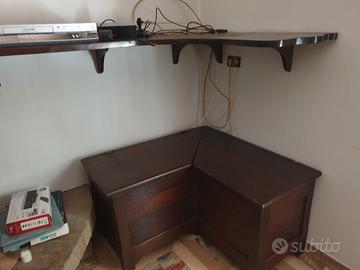 cassapanca ad angolo in legno , misure 103 x 50 h 60 più ripiani legno angolari porta Tv