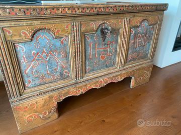 Ideale come elemento d’arredo in ambienti rustici, case di montagna o per collezionisti di mobili alpini dipinti.