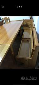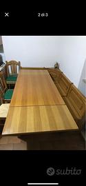 Cassapanca angolare con tavolo allungabile e 3 sedie in legno
