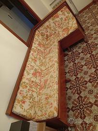 Cassapanca angolare vintage in legno c/contenitore. Seduta con cuscini. Euro 99,00.
