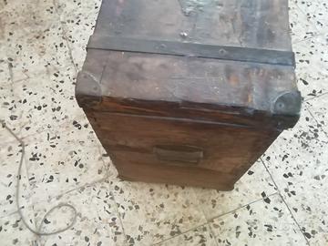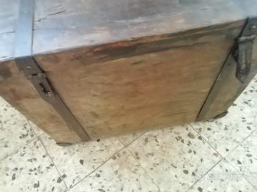 Cassapanca anni 50 in buone condizioni trattata a cera, con Ferramenta in ferro interno foderata con carta di FIRENZE Dimensioni 65 x 35 H 55