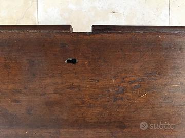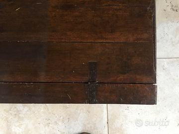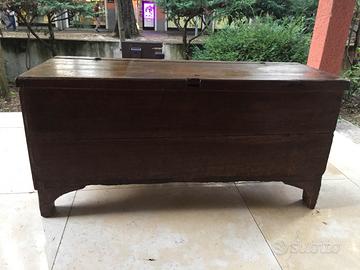 Meravigliosa cassapanca/cassone da viaggio antico vendo a malincuore per problemi di spazio. Le misure sono: circa 110 cm lunghezza, 54 cm altezza e 42 di profondità. Posso aggiungere che è di legno di castagno all'interno e noce all'esterno. La datazione (non mia: l'ho fatta valutare da un esperto!) più probabile è fine '700. Necessita di restauro.