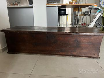 Cassapanca arte povera primi 900, da sistemare le cerniere di apertura si può utilizzare anche così sollevando il coperchio misure lunghezza 150 cm altezza 40 cm, profondità 50 cm