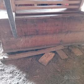 antica cassapanca a due scomparti , semplice , senza decorazioni, con manici in metallo da restaurare ma senza parti da cambiare.