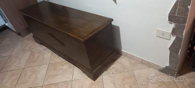causa rinnovo arredamento, vendo cassapanca arte povera, dettaglio foto di un piede, dimostra che necessita di restauro. misure lunghezza 145cm larghezza 43cm altezza 57cm. spedizione a carico dell'acquirente.