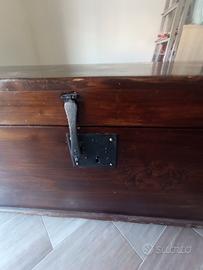 Cassapanca, baule, primi anni del 1900. In buone condizioni, già restaurato, ma esternamente presenta dei graffietti e piccole scorticature. Internamente sono presenti segni di usura dovuti al tempo, ma è in buone condizioni. Legno robusto, fatto a mano con finiture in metallo. Conservato molto bene ed è tutt'ora usato. Le misure sono: Profondità 65 cm, larghezza 1 m e 29 cm ed altezza 50 cm. Vendo per motivi di spazio