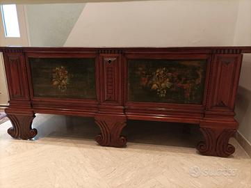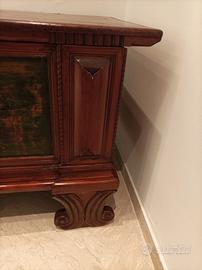 cassapanca perfetta per allestire un trullo o una casa in affitto perché puramente tipica del Sud questo mobile appartiene alla prozia della mamma legno abete misura 180 lunghezza 70 altezza 60 larghezza. Rara chiava originale tutto originale dipinto a mano e verniciato. Trasporto a carico dell'acquirente