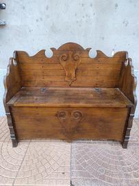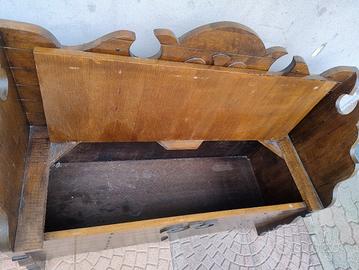 cassapanca corredato con attaccapanni entrambi in legno arte povera . il tutto in buono stato di conservazione.
