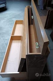Cassapanca in legno con pratici contenitori. Le dimensioni sono quelle riportate in figura. La cassapanca viene fornita smontata, per un più pratico spostamento. Prezzo trattabile.