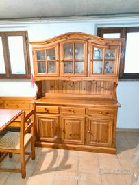 In ottimo stato e disponibile per la visione , vendo cassapanca con tavolo , 4 sedie e credenza (armadio ) in legno massello chiaro.
