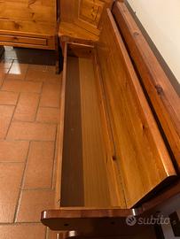 Cassapanca ad angolo con contenitore Misure 122 x 202 cm e tre sedie, tutto in legno massiccio. Prezzo 180€