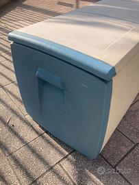 Vendo cassapanca da esterno in resina dimensioni L135xP54xH60 cm, in buone condizioni, con rotelle per facilitare lo spostamento