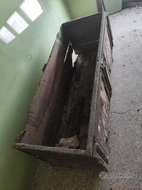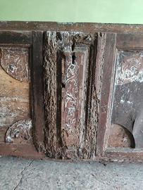 Quel che rimane di una antica cassapanca del 600 da oneroso restauro mancante di coperchio e altro