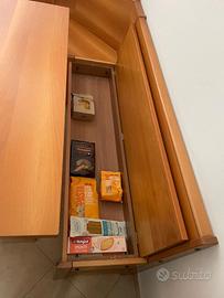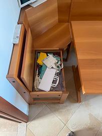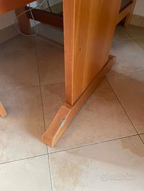 Vendo cassapanca con tavolo da cucina in legno massiccio noce chiaro. Misure cassapanca: 200x1,20x85 h misure tavolo: 1,40x80x78 h In alcuni punti, le basi e le gambe del tavolo sono rosicchiati. In regalo due sedie.