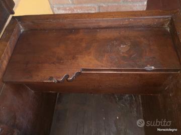 Deliziosa ed imperdibile cassapanca Emiliana barocca, interamente realizzata in assi uniche di noce massello spesse quasi 4 cm, costruita in ambito Parmense nella seconda metà del XVII secolo.